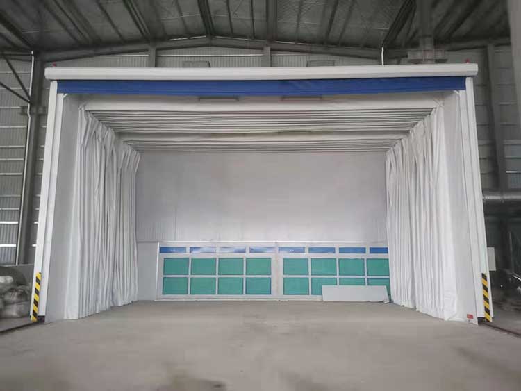 一、移动伸缩喷漆房又叫作伸缩喷漆房、移动喷漆房、伸缩式喷漆房。它是一种专业的涂装设备,能满足大型、异形涂装工件喷漆作业过程中对环境的温度、湿度、照度、洁净度的需求;为操作工人提供良好的安全卫生环境。喷漆过程中产生的有机废气,通过治理后,使得涂装作业的废物排放达标,保护环境免遭污染。就是说为了使喷涂涂装时产生的浮游涂料粒子及所包含的废气能够及时从喷涂的现场清除,以达到提高涂装质量,保护环境,维护操作人员的身体健康的目的。