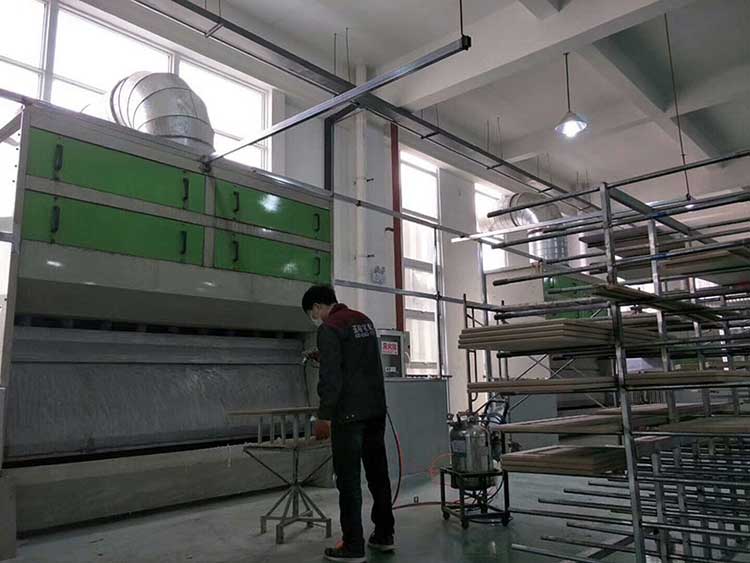 1、良好的漆雾净化效率,采用风机的离心力涡流方式,漆雾的净化效率分别为:塑脂涂料及硝基漆达到94%,三聚氰胺涂料达到95%,