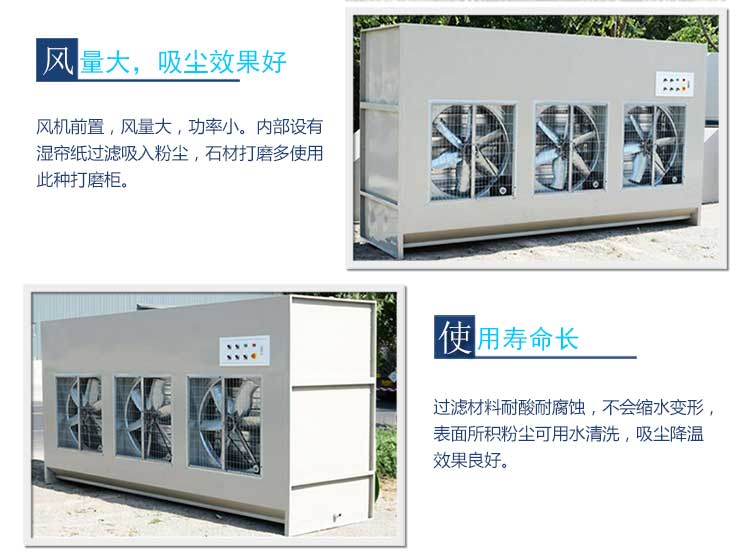 二、下面介绍下使用大风量负压风机水式除尘柜特点。