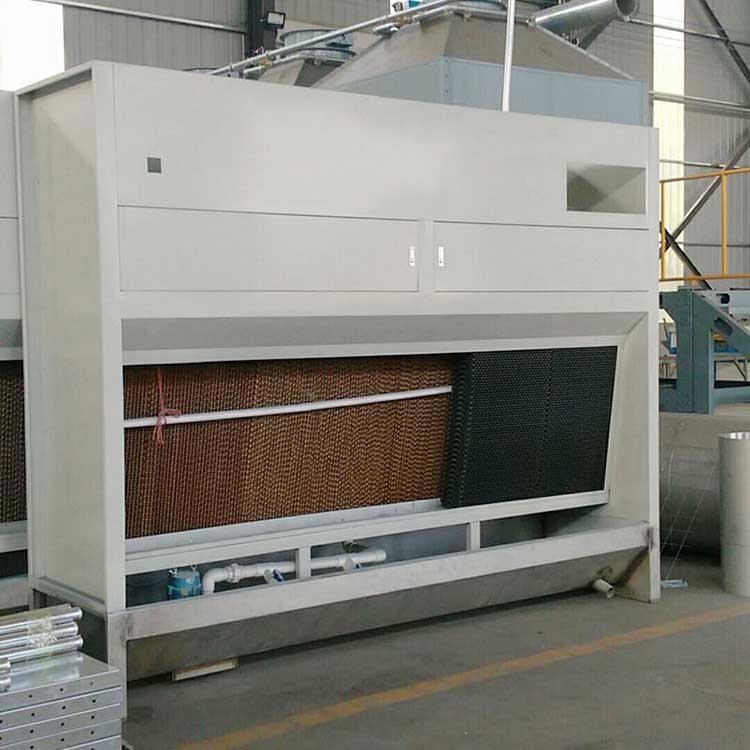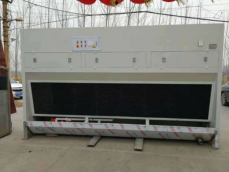 石材打磨除尘柜前面有一层15cm厚塑料湿帘,这种水帘片水帘片采用塑料材质,网孔为六角形蜂巢状网孔,前后网孔之间为孔道,孔道侧壁具有透水孔,此结构的水帘片便于通风及水的渗透,采用塑料材质的水帘片抗霉变、经久耐用而且可清洗,降低了使用成本,改善了长期使用效果。