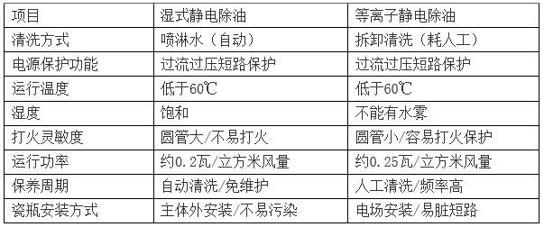 湿式静电油烟净化器与常规干式低温等离子原理相同,烟气环境不同(干式和湿式)。直流高压电使阴极线附近空间气体电离,油滴颗粒荷电后在电场力作用下移动并沉淀在积油阳极表面,湿式静电油烟净化器用集油阳极表面水洗冲洗清除油滴、粉尘(自动清洗免维护)。低温等离子用拆卸浸泡清洗方式(耗时运行成本高)。